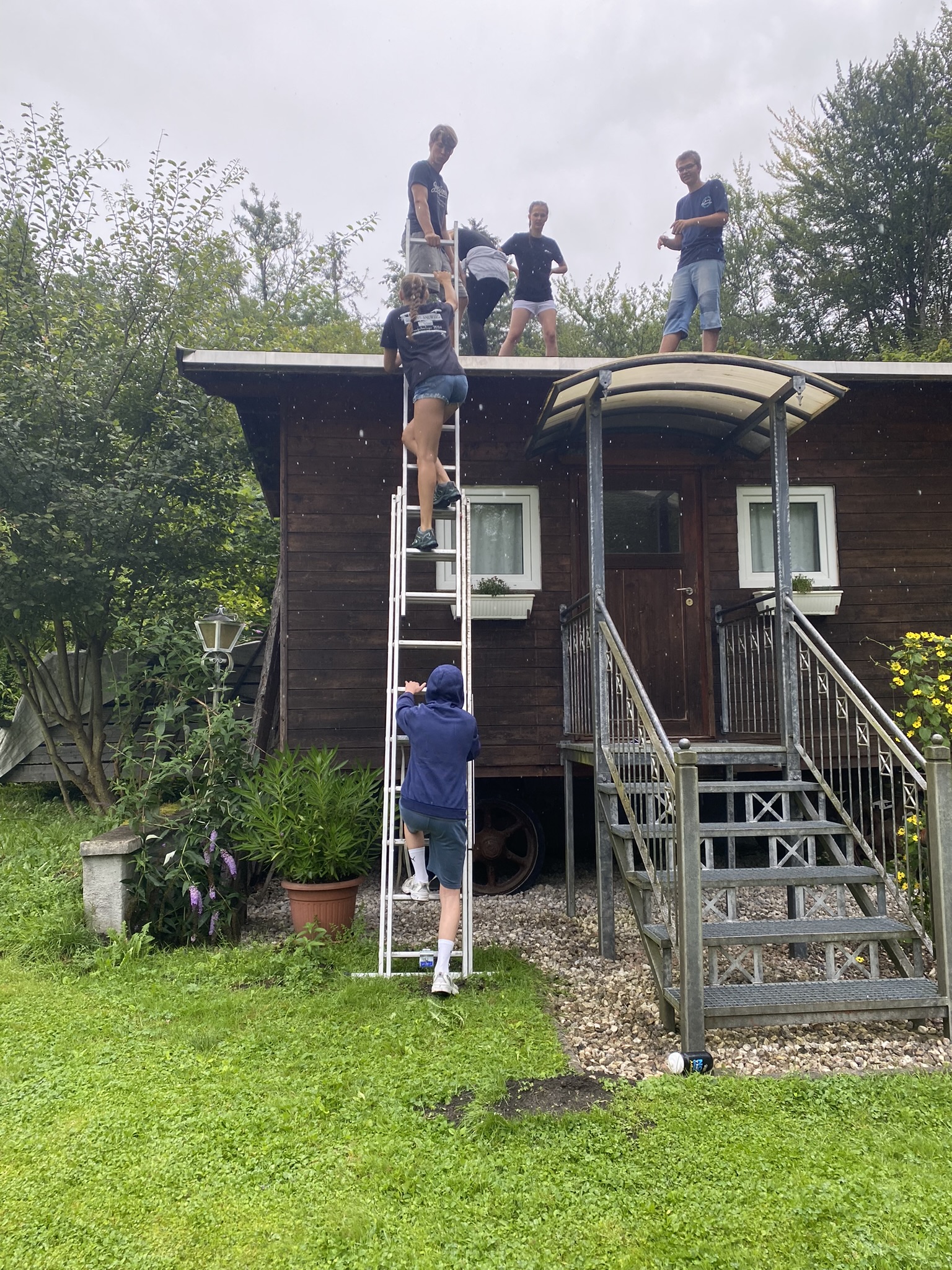 Der „Salzburger Schnürlregen“ konnte der guten Laune indes nichts anhaben. Unsere Teens haben Spaß und Ehrgeiz gezeigt, während sie als „Olympioniken“ in verschiedenen Disziplinen wie Sprint, Kugelstoßen oder Weitsprung, gegeneinander antraten. Auch Darts, Becherstapeln, Seilspringen und viele andere Sportarten standen auf dem Plan. Die Sieger wurden anschließend zur Olympischen Fanfare von John Williams (1984) mit einem Platz auf dem Siegertreppchen und einer Medaille geehrt. Ehre, wem Ehre gebührt!