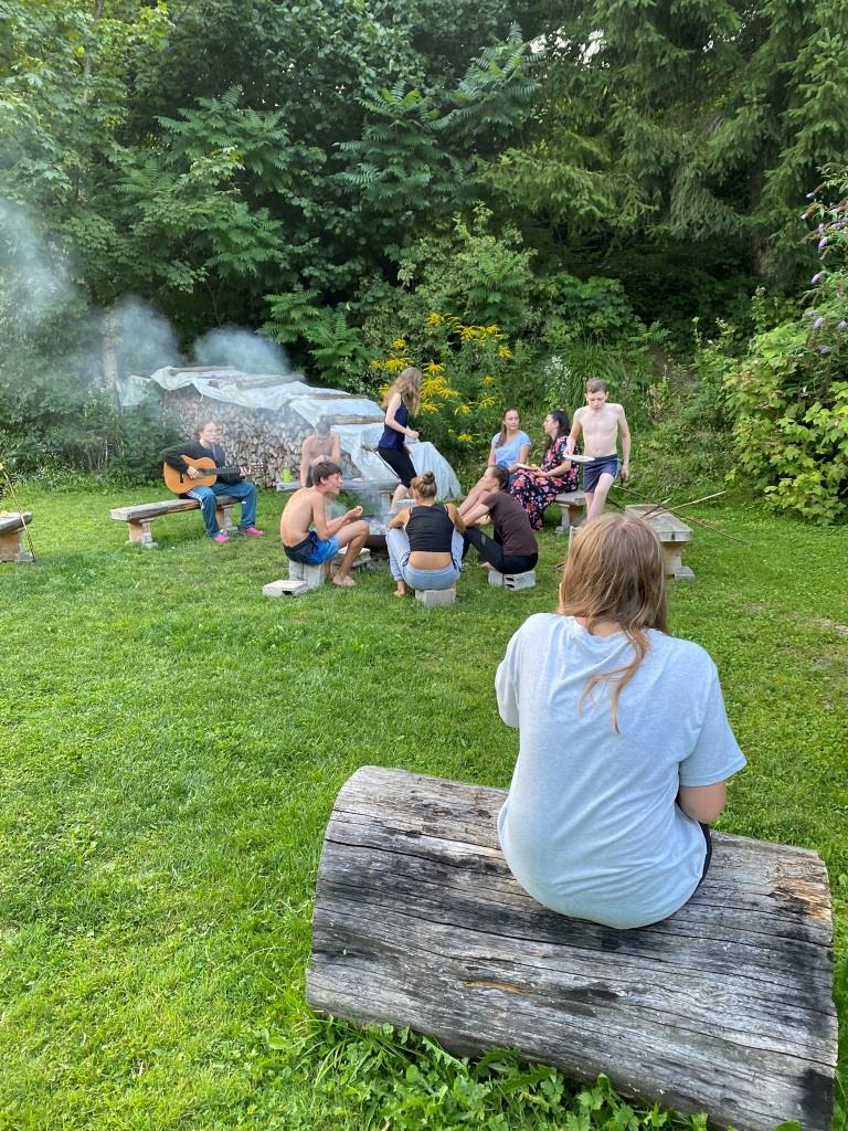 „Am Teenielager ist es, dank der kleinen Gruppe an Teilnehmenden, sehr leicht sich in die Gemeinschaft von rund 20 Jugendlichen einzufügen. Mir ist das früher schwergefallen, aber ich durfte das auf diesem Lager lernen. Das Haus ist immer mit Musik gefüllt. Entweder durch das Klavier, das in der Freizeit tüchtig bespielt wird, oder durch andere Instrumente, die man selbst mitbringt. Die Stimmung ist immer gut und in der Zeit zwischen den Programmpunkten wird fleißig Volleyball, Tischtennis oder Mäxchen gespielt. Auf dem großen Gelände mit Bach, Wald und Wiese werden abwechslungsreiche Stationen- und Geländespiele geplant. Am Ende des Lagers wird reflektiert, was man über Gott gelernt hat, welche Erfahrungen man hatte, wie man Jesus näher gekommen ist... Das wird dann auf freiwilliger Basis mit der Gruppe geteilt. Ich hatte mich, dank eines Inputs, vor 4 Jahren für die Taufe entschieden. Danke an das gesamte Team, das jedes Jahr wieder ein so geniales Lager auf die Beine stellt.“ (Mia 18)
